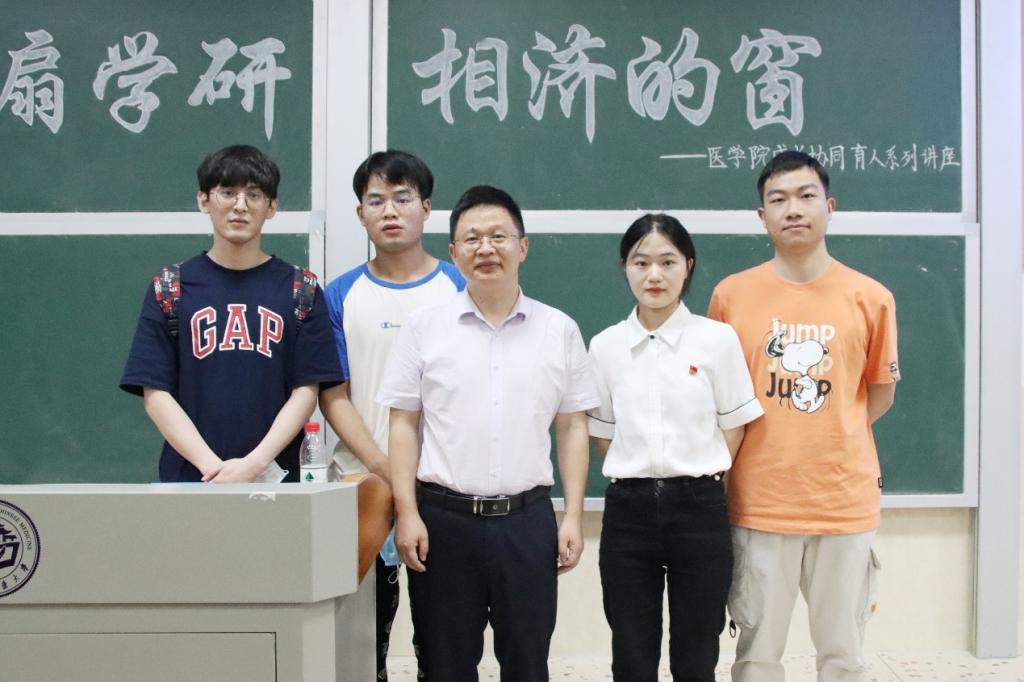5月31日晚7时,医学院“明德·启智·筑梦”成长协同育人系列讲座,在湖南中医药大学含浦校区3315教室开讲,主题为“开一扇学研相济的窗”,由医学院生理学教研室副主任、副教授唐标及其学研小组成员周宵、梁海、刘珑、蒋伟担任主讲人。讲座由医学院党委副书记任婷主持。医学院团委书记李帆影,学生管理科副科长廖海燕,辅导员罗太石、刘娅薇、钟小康、田喻、闵文洁,医学院19级、20级、21级各班部分学生参加讲座。