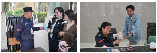 一朵朵精美的簪花承载着感恩与祝福,传递着对学校后勤工作人员默默付出的敬意。活动中,党员们与后勤工作人员亲切交流、合影留念,他们的笑容定格在每位参与者的心中。参与活动的宿管阿姨感慨:“这份心意让我们感到特别温暖,同学们用实际行动践行了雷锋精神!”