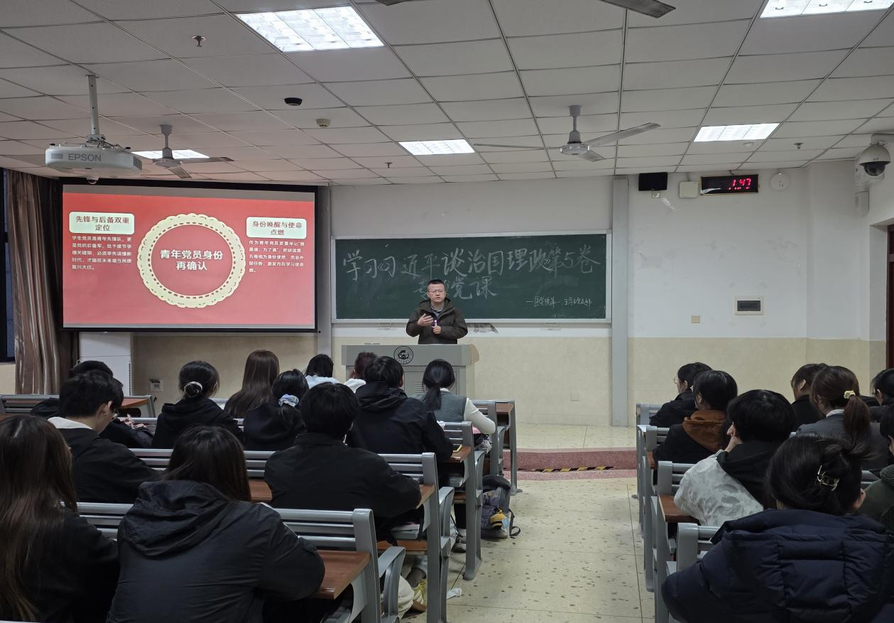 为深入学习贯彻习近平新时代中国特色社会主义思想,引导青年党员在学思践悟中坚定理想信念、强化使命担当,以理论武装赋能青年成长,推动党的创新理论在校园落地生根,11月18日,医学院第一、第五学生党支部联合举办《习近平谈治国理政(第五卷)》专题学习会。本次专题学习由医学院党委委员、副院长魏科主讲,医学院第一学生党支部书记马翔、第五学生党支部书记赵宇玺、所在支部全体党员参加学习。