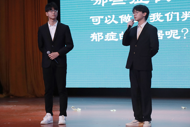 比赛伊始,《我们对抑郁症几乎一无所知》组以采访形式引出抑郁症这个话题,并表演了一段关于抑郁症的舞蹈。接着《伪装者》组让大家听到了淋巴肿瘤细胞之间的“对话”,通过此种方式给大家生动地描绘了淋巴肿瘤细胞入侵人体的过程以及治疗方法。《改变上帝的创造》组结合视频阐述了自己对人类未来发展方向的美好想象。紧接着,《凌晨你的身体在干什么》组强调了睡眠时间和睡眠规律的重要性。《“经”天历险记》组用脍炙人口的顺口溜让大家记住了该如何爱护月经期间的女生。通过《疼痛者说》组的演讲,大家明白了疼痛的重要性。《肚子里的“宝”》组呼吁大家健康饮食,养成强健体魄。《HPV知多少》组制作了HPV科普小短片,并借此告诉大家注射疫苗可有效预防HPV。《战“狼”》组用事实证明乐观心态是战胜系统性红斑狼疮的关键因素。《跳动的音符,治愈的良方——浅谈音乐治疗》组用钢琴展示了音乐治疗的魅力。演讲结束后,文体部表演队带来的小品让现场氛围再次活跃起来。随后由罗太石老师发言,他希望大家不负青春,不断培养自己的科技创新意识。最后主持人宣布获奖名单,评委分别为获奖人员颁奖并合影留念。至此,本次大赛圆满结束。