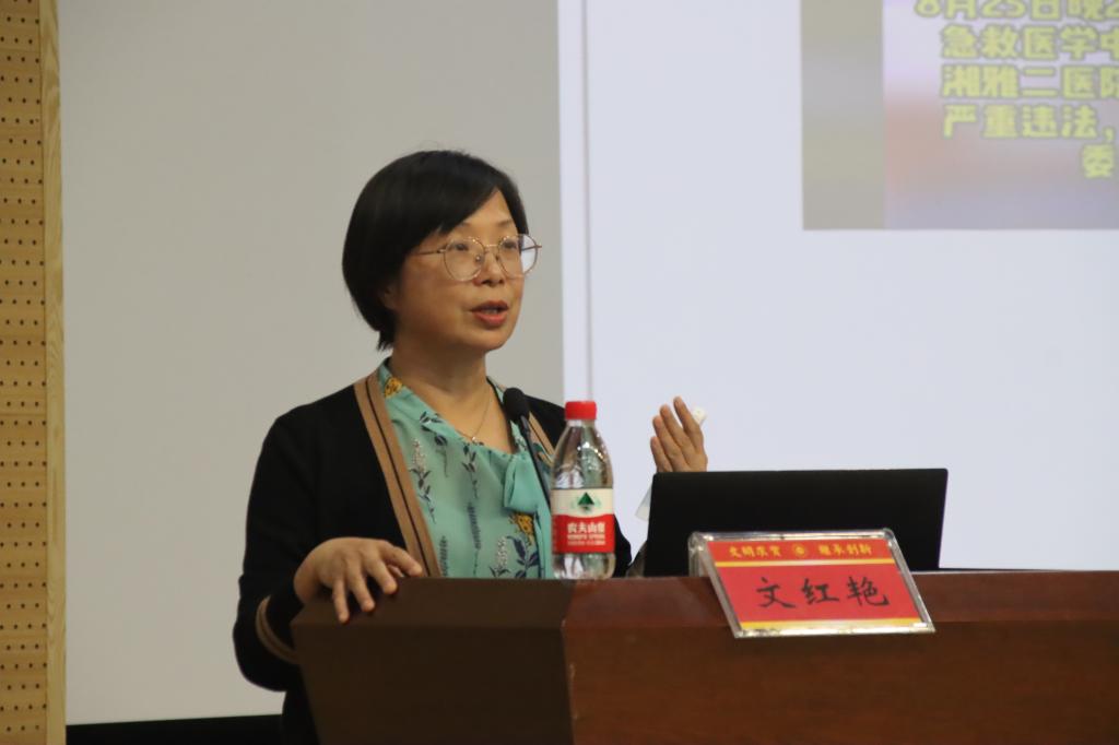 文红艳以《圆梦医学,追求卓越》为题讲授“书记第一课”。她从立德修身、追求卓越、享受生活、严守底线四个方面为新生未来的学习生活道路指明方向,并结合实例提出作为一名医学生不仅需要精进技术,培养医德仁心也不容小觑。讲座最后,在场新生共同宣读《医学生誓言》,将医学精神铭记于每位新生心中。