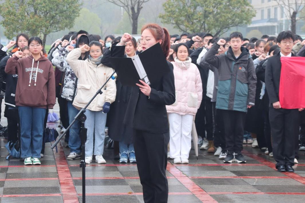 活动伊始,国旗护卫队护送国旗、校旗入场,在全体师生注目礼下,奏国歌升国旗、奏校歌升校旗。