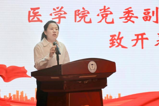 银洁代表校团委向医学院致以真挚的祝福与关心,对医学院团委、学生会取得的优异成绩表示赞赏,并希望所有学生干部能胸怀三心:一、守初心,做到党旗所指就是团旗所向;二、有决心,勇于担当乐于奉献;三、有信心,率先垂范、发挥榜样作用。