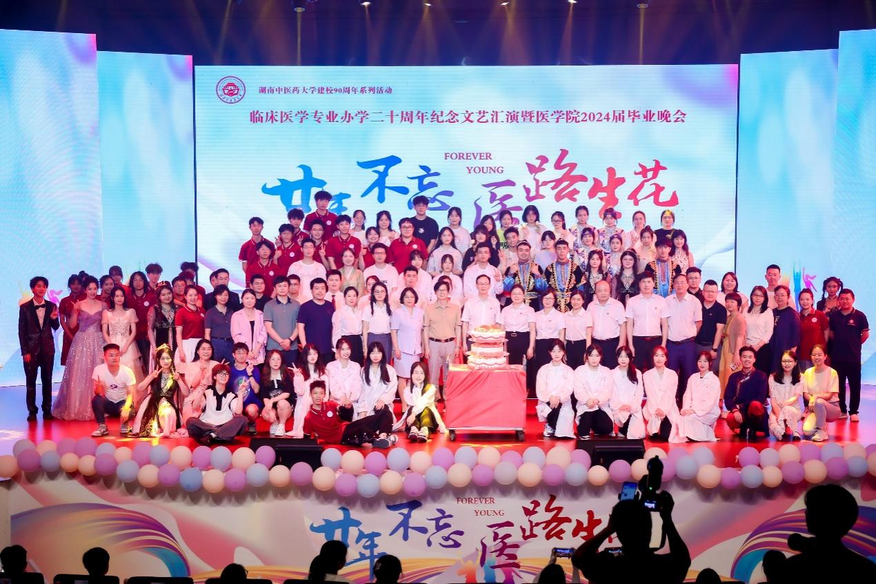 6月6日晚7时,湖南中医药大学“廿年不忘,医路生花”临床医学专业20周年纪念文艺汇演暨医学院2024届毕业晚会于含浦校区学生活动中心圆满举行。原医学院党委书记肖子曾、文红艳,招生就业处处长、原医学院院长庹勤慧、医学院全国优秀教师卢芳国、学生工作部部长朱久宜,校团委书记银洁,医学院党政领导班子、教师代表、2024届毕业生及家长共计500余人参与本次晚会。