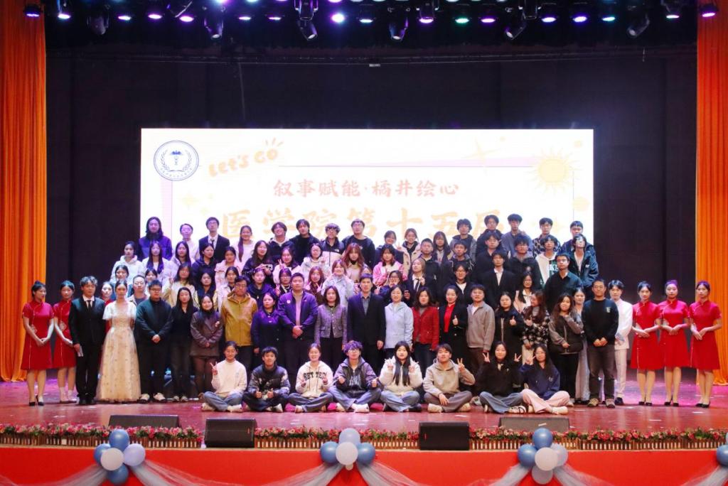 11月26日晚7时,湖南中医药大学医学院第十五届班服设计大赛决赛于含浦校区学生活动中心顺利举行。医学院党委副书记刘莉,学生管理科科长苏醒,团委书记廖海燕,学生管理科教师代表,各参赛班级班主任,第十五届团委、学生会主席团、各部门部长及医学院本科学生党群服务中心主任团、合欢花工作室主任团,2025级各班学生代表共同参与本次活动。