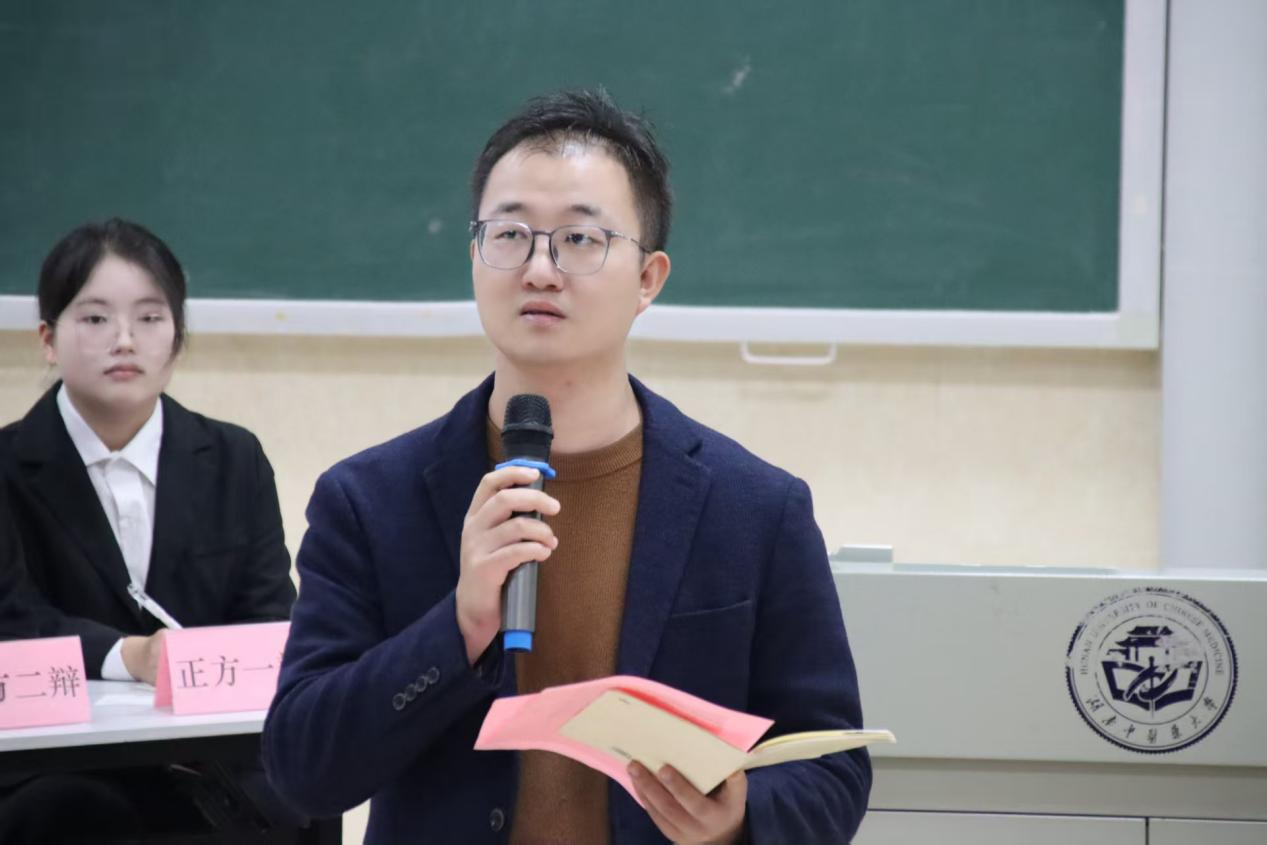 10月31日晚七点,湖南中医药大学医学院第十四届新生辩论赛决赛于济世楼317教室顺利举行。医学院团委书记廖海燕,学生管理科老师邹翔、钟小康,第十五届团委、学生会主席团,医学院本科学生党群服务中心主任团,合欢花工作室主任团担任本次比赛评委。