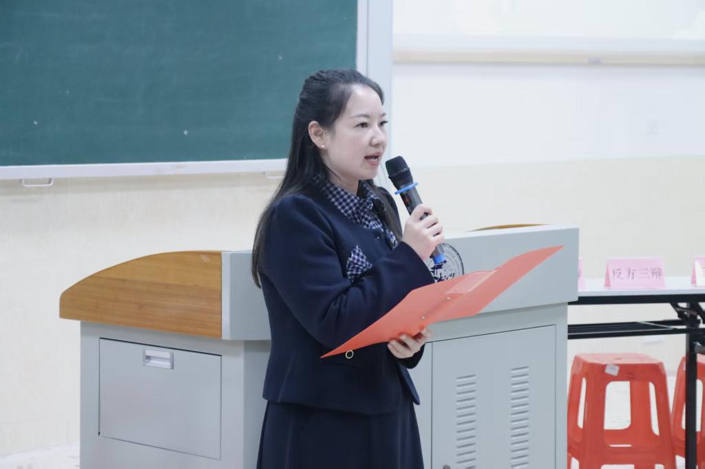 廖海燕对比赛进行总结。她高度赞扬了双方辩手在辩论中展现出的出色专业素养与思辨能力,随后强调,本次辩题是一道没有标准答案的医学伦理难题,思想碰撞的过程意义远超胜负本身,其核心价值在于对医学生的思想引领,促使大家思考未来在医疗岗位上应如何平衡效益、公平与人道,让大家深刻认识到医学不仅是技术的集合,更是人文精神与社会责任的载体。