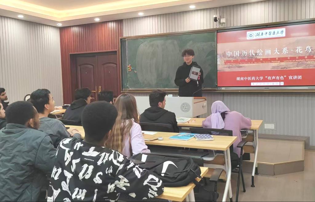 团队成员们在指导老师颜晔带领下,先后前往湖南省美术馆和湖南师范大学美术学院莫高翔教授绘画工作室进行专题学习。针对中国各个历史时期的绘画作品和流派脉络做了详细了解和赏析,亲身体验着中国绘画艺术的博大精深。宣讲团深入到班级、社区,积极宣传中国传统绘画艺术。通过展示各个历史时期代表性花鸟画作品,在欣赏画作的同时,让鉴赏者更加深入地了解中国古代花鸟画的发展历程和艺术价值。